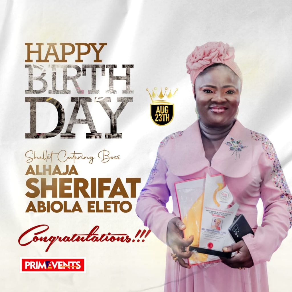 Resounding birthday wishes have been pouring in for one of Nigeria’s most innovative catering magnates, Alhaja Sherifat Abiola Eleto, the effervescent CEO of Shellet Catering Services.