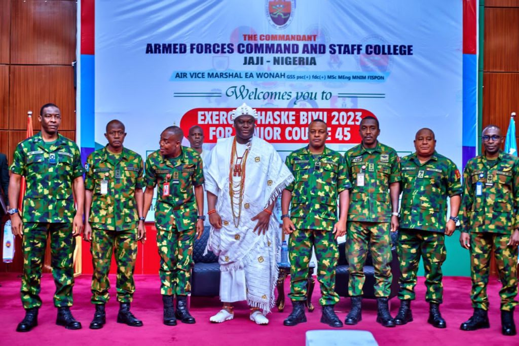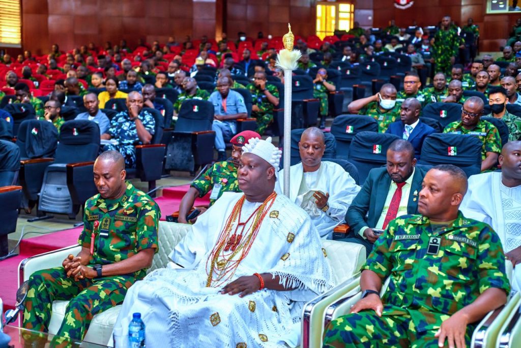 In his speech, Commandant of the Armed Forces Command And Staff College, JAJI Kaduna state, Air Vice Marshal Emmanuel Wunoh thanked the monarch for honouring their invitation and expressed satisfaction with the Ooni’s speech to the officers of the Nigerian military who were present at the lecture which is an annual exercise organised by the military training institution to cross-fertilize ideas and strengthen inter-agency collaboration between civil-military and paramilitary organisations to tackle emerging and contemporary security threats within their domains.